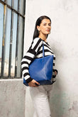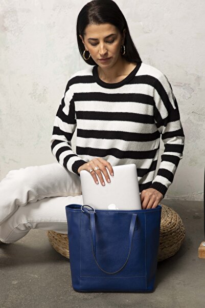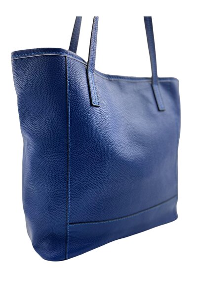 Tokyo Hakiki Deri Tote Omuz & Kol Çantası (Saks Mavi)